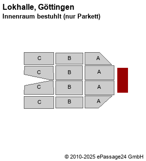Außerdem hast du die Möglichkeit, dir die Hallenpläne von LOK-Halle in Göttingen anschauen. Wir bieten für alle Veranstaltungen in LOK-Halle eine breite Auswahl an Tickets - von günstigen Tickets bis zu den besten Plätzen von LOK-Halle.